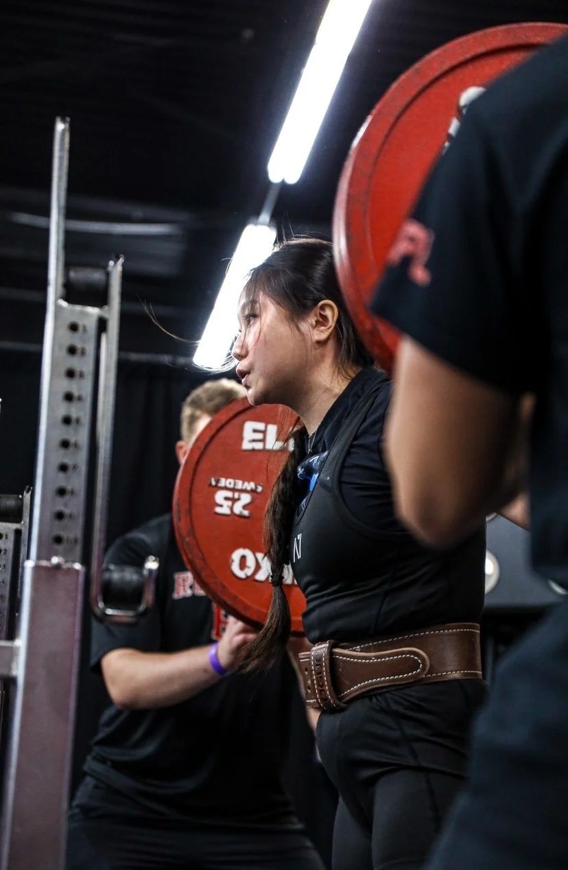 The day of the meet, I actually cut down so perfectly that I weighed in at 59.9 kg to make the 60 kg weight class. Not to toot my own horn, but this goes to show that nutritional guidance and expertise on what to do in a reasonable way can put you at an advantage for meeting a goal without drastic measures like water cutting or huge losses in strength. The only downfall to my cut was that my waist was much smaller because I was the leanest I have ever been, making my belt way too loose. I actually ended up having to use a random belt I have never trained with before to create more tightness for bracing. This sort of backfired and on my third squat attempt, the skinniness of the belt I wasn’t used to may have caused me to pitch forward and misgroove the attempt. It was a weight I have pretty much done before 1 week out (282 lb) but the slip up caught me off guard. I am happy to say I have since gotten a smaller belt that is like my old one so I am super prepared for the next meet/weight cut.